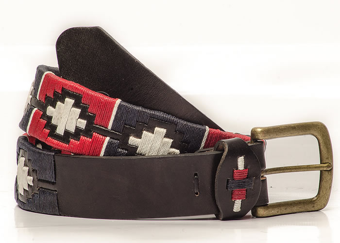 Cinturón «Bordado Completo Café», con hebilla en bronce viejo y pasador bordado, con distintas combinaciones de hilos.