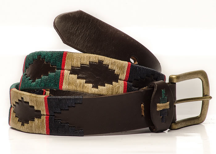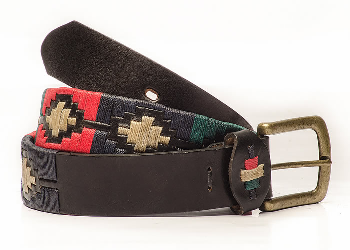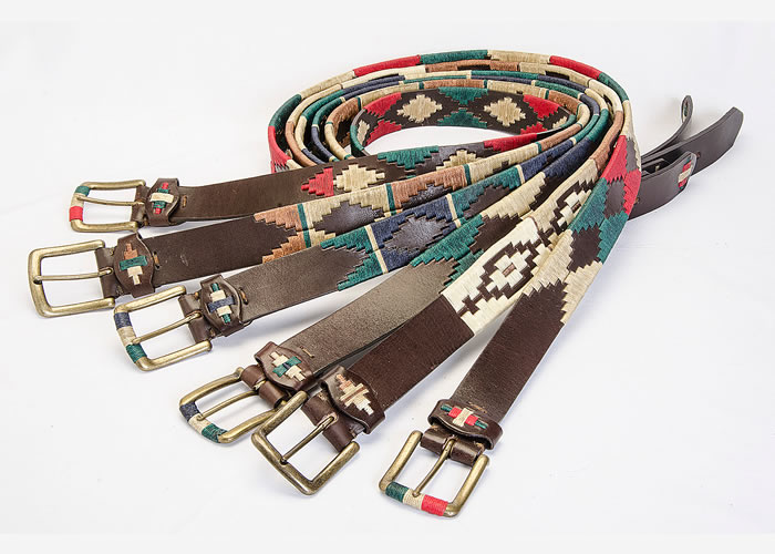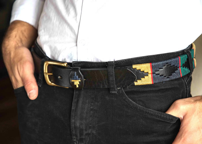 Cinturón «Bordado Completo Negro», con hebilla en bronce viejo y pasador bordado, con distintas combinaciones de hilos.