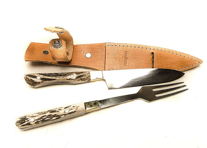 Juego de cuchillo y tenedor Grande de acero inoxidable con mango de madera.