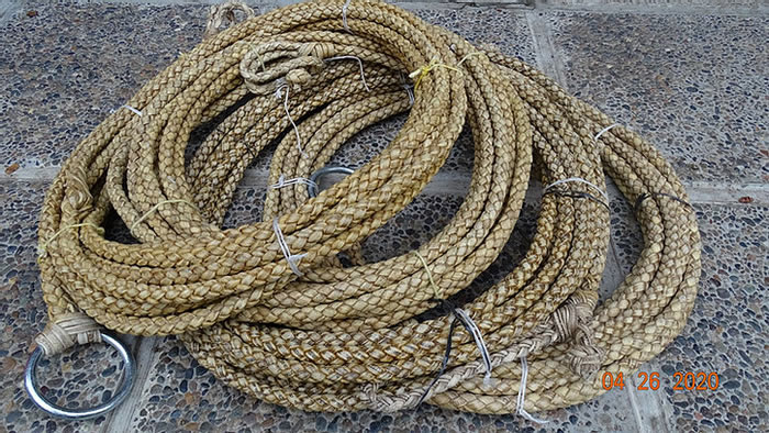 Lazo Trenzado de cuero crudo , de 6 hebras Largo.