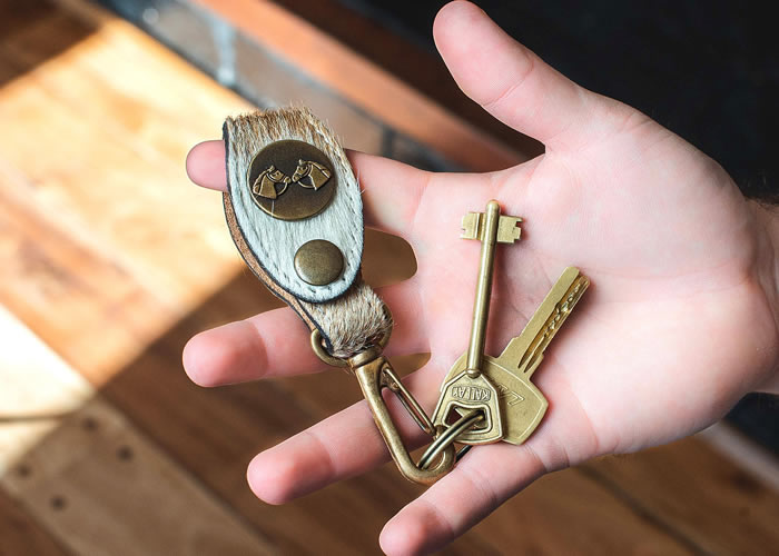Llavero , «Pelo con Aplique», elaborado con cuero de excelente calidad .