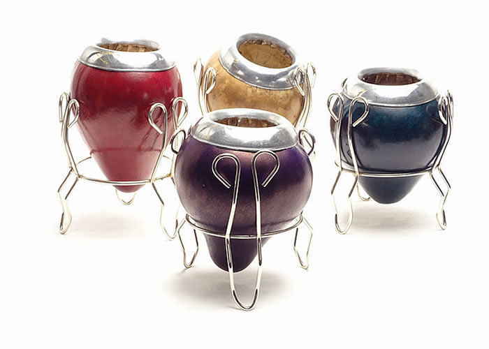 Mate de Calabaza Chico con pie de alambre y virola de aluminio en varios colores.