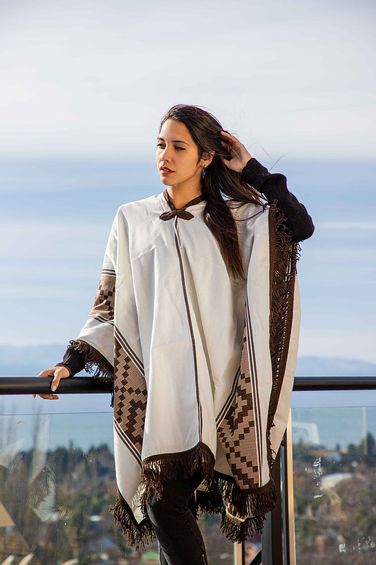 El poncho de guardia, típico de diseño tradicional, con motivos de «pampa», forma parte de la vestimenta habitual de los pueblos originarios de la región pampa argentina.