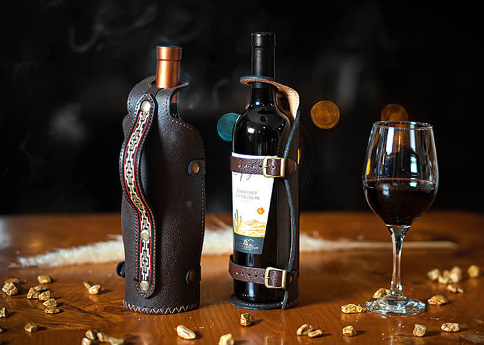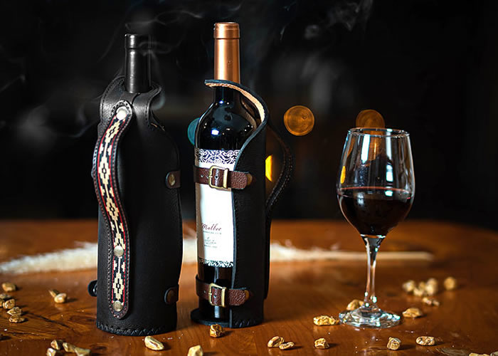 Porta vino «Hebillas», pelo o cuero. VIN 01